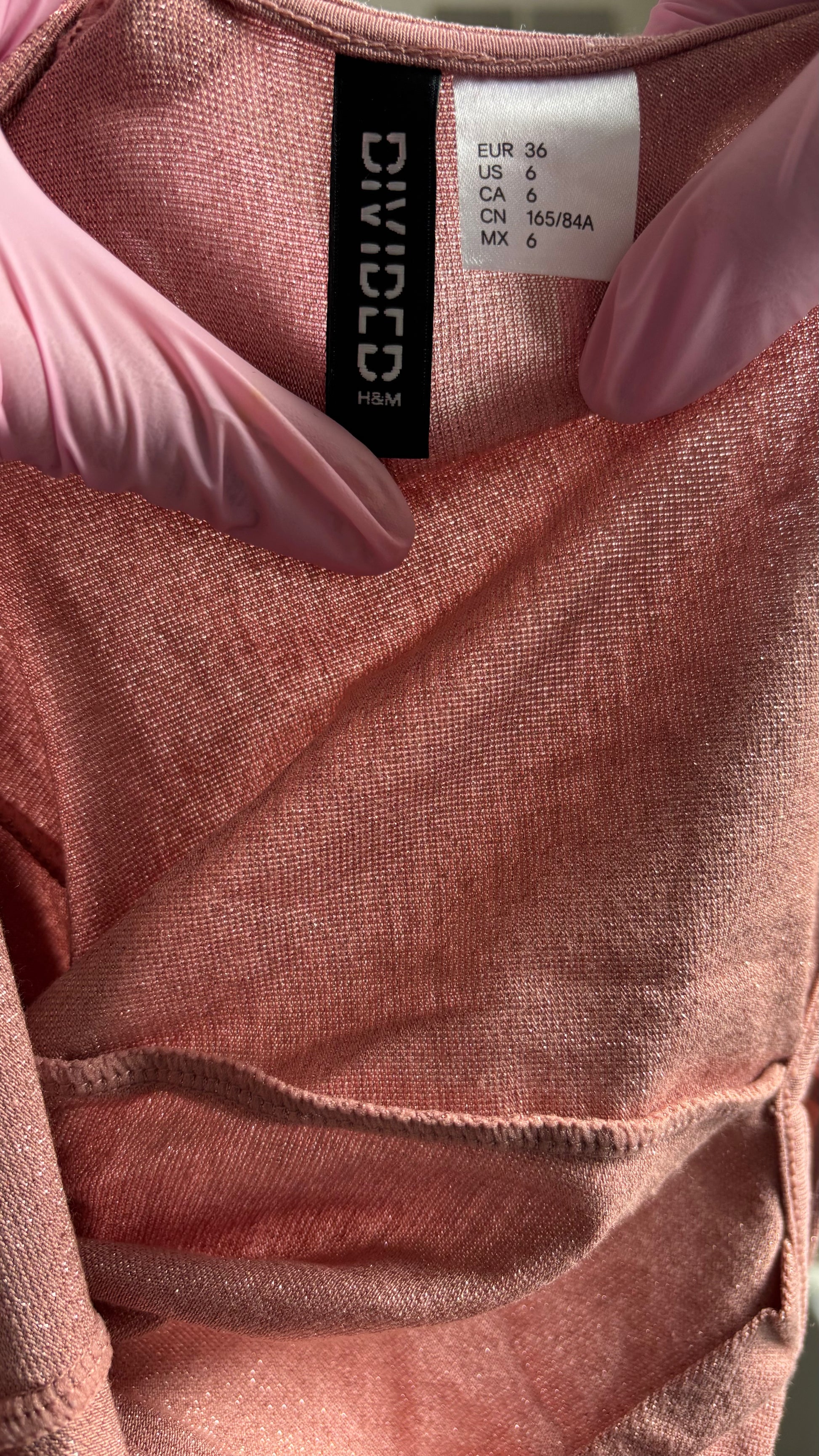 Women's pink shimmery sleeveless V-neck skater mini dress