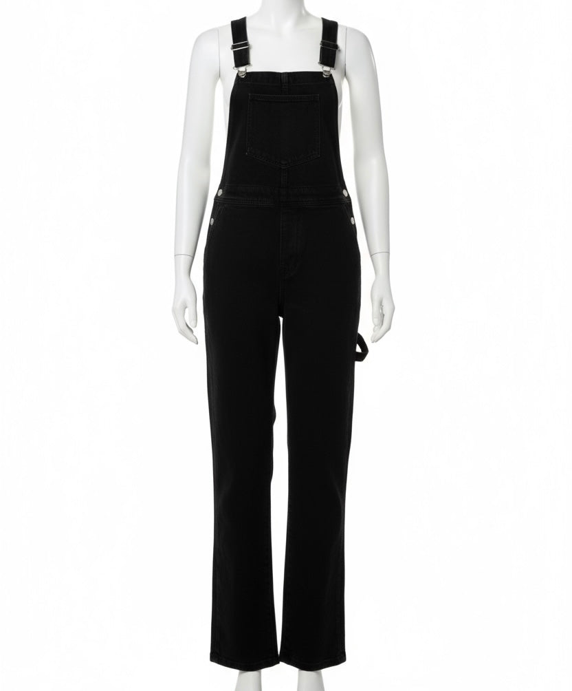 Women's full-length black denim overalls / dungarees