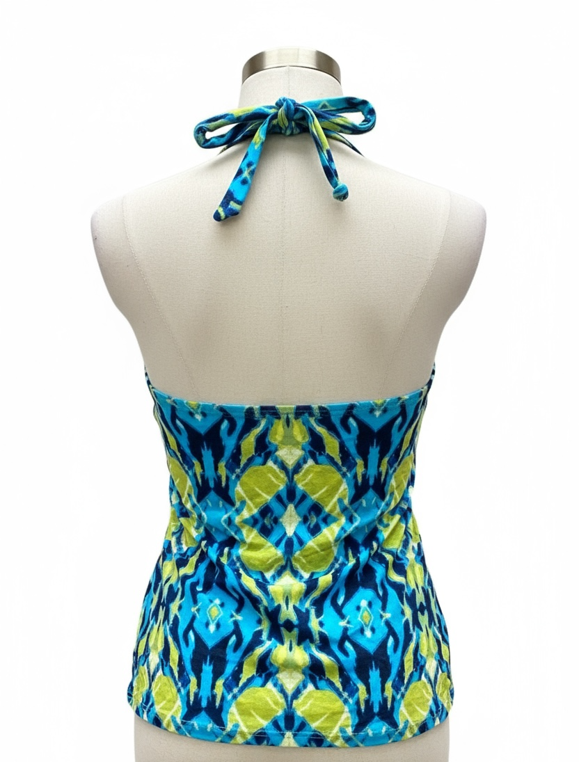 Women's abstract print tie-neck halter top with bra pads