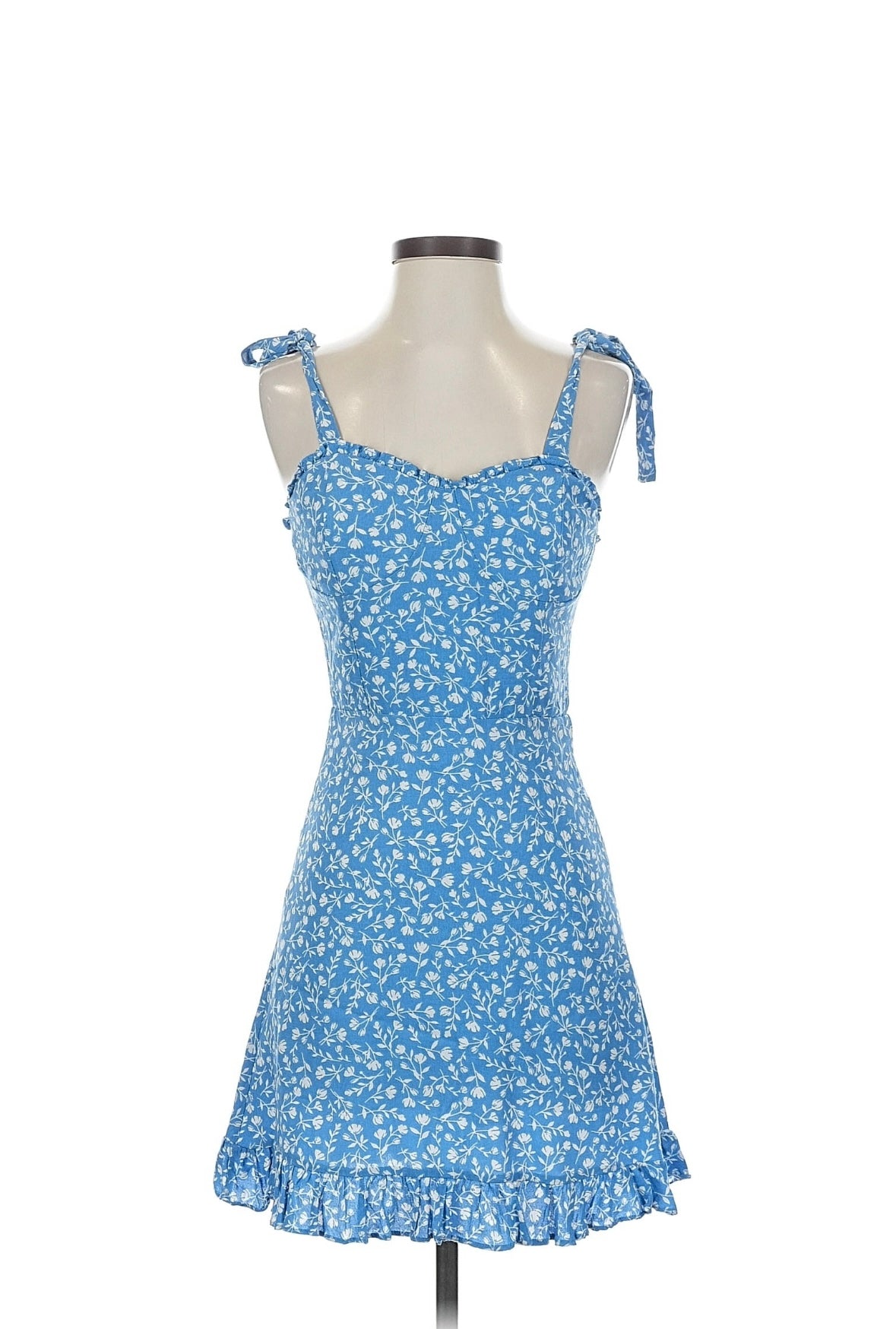 Women's floral print mini sundress with tie-straps and ruffled hem