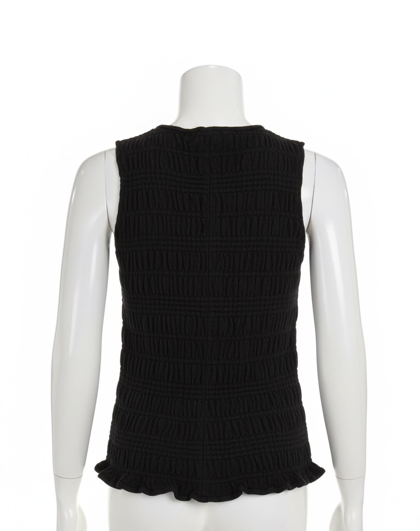 Women's black smocked sleeveless silk-blend shell top