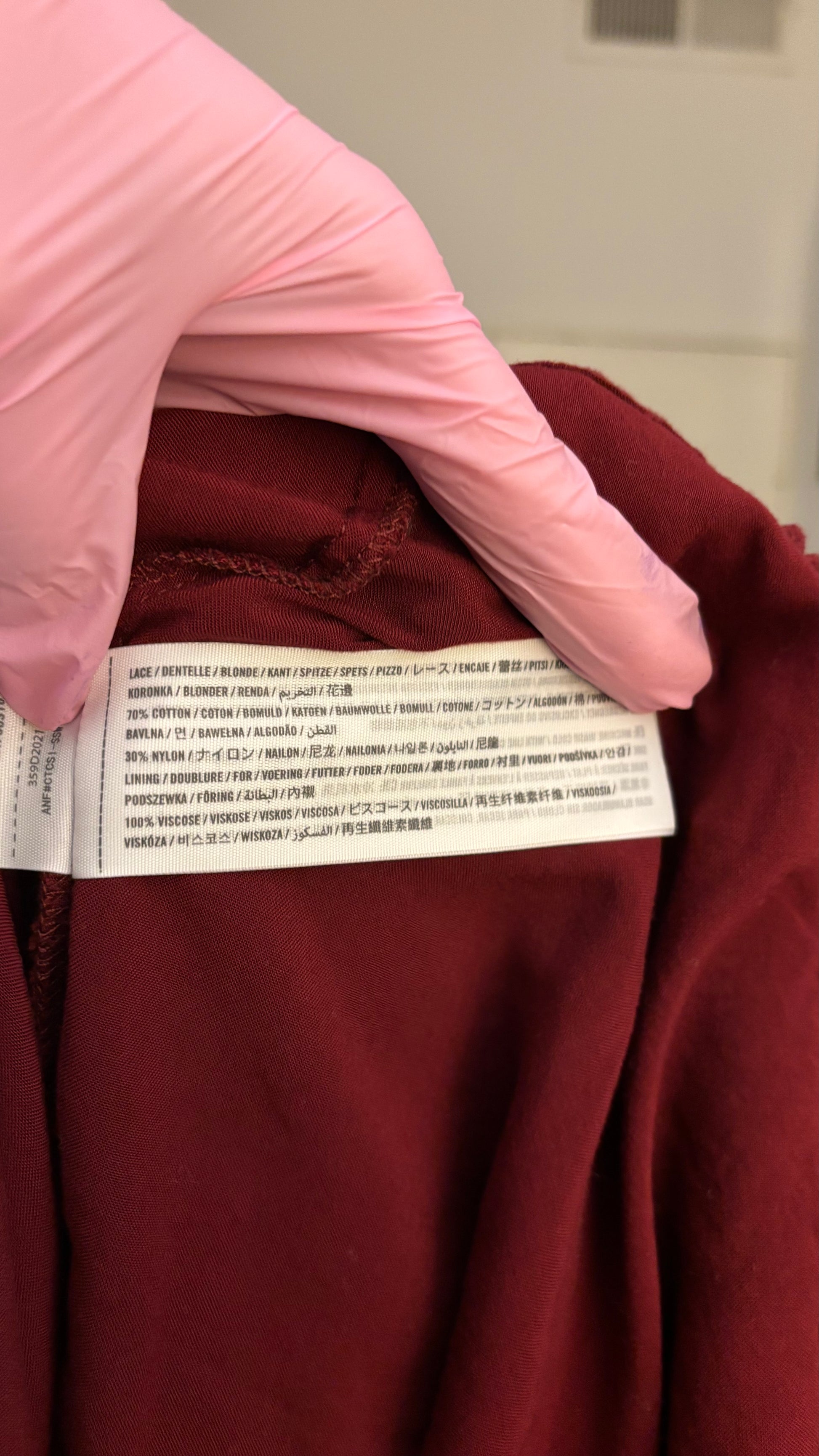 - Material: Lace: 70% cotton, 30% nylon; Lining: 100% viscose
